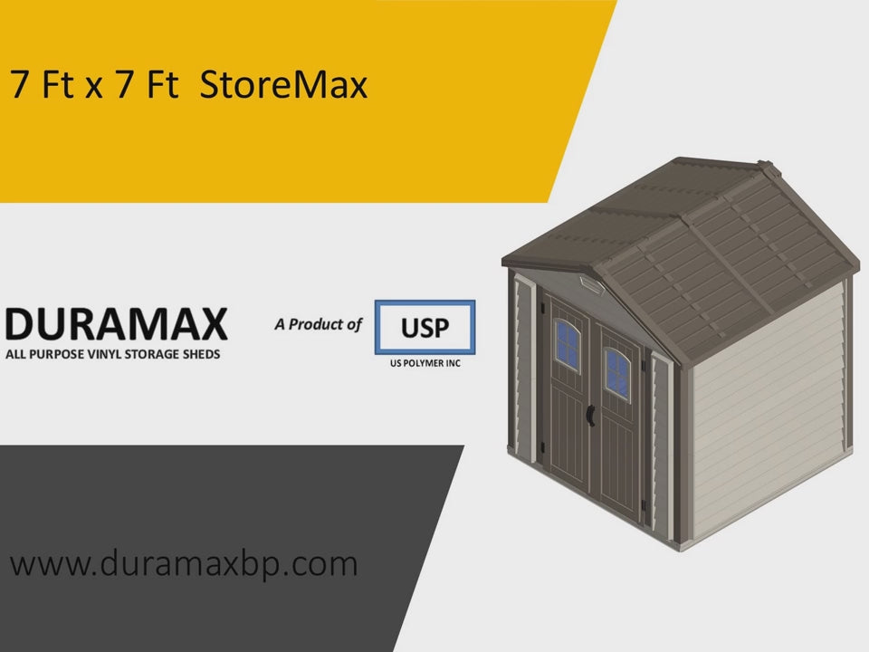 The DuraMax 7' x 7' StoreMax vinyl shed with molded floor is an aesthetically attractive shed that features a durable and superior fire-retardant vinyl resin exterior. It's interior beams and columns are made of heavy-duty galvanized structural steel. The StoreMax Plus adds beauty to any backyard or outdoor garden area. The StoreMax 7x7 shed provides strength and safety at a very affordability price and comes with a 15-year warranty which is the longest in the industry!